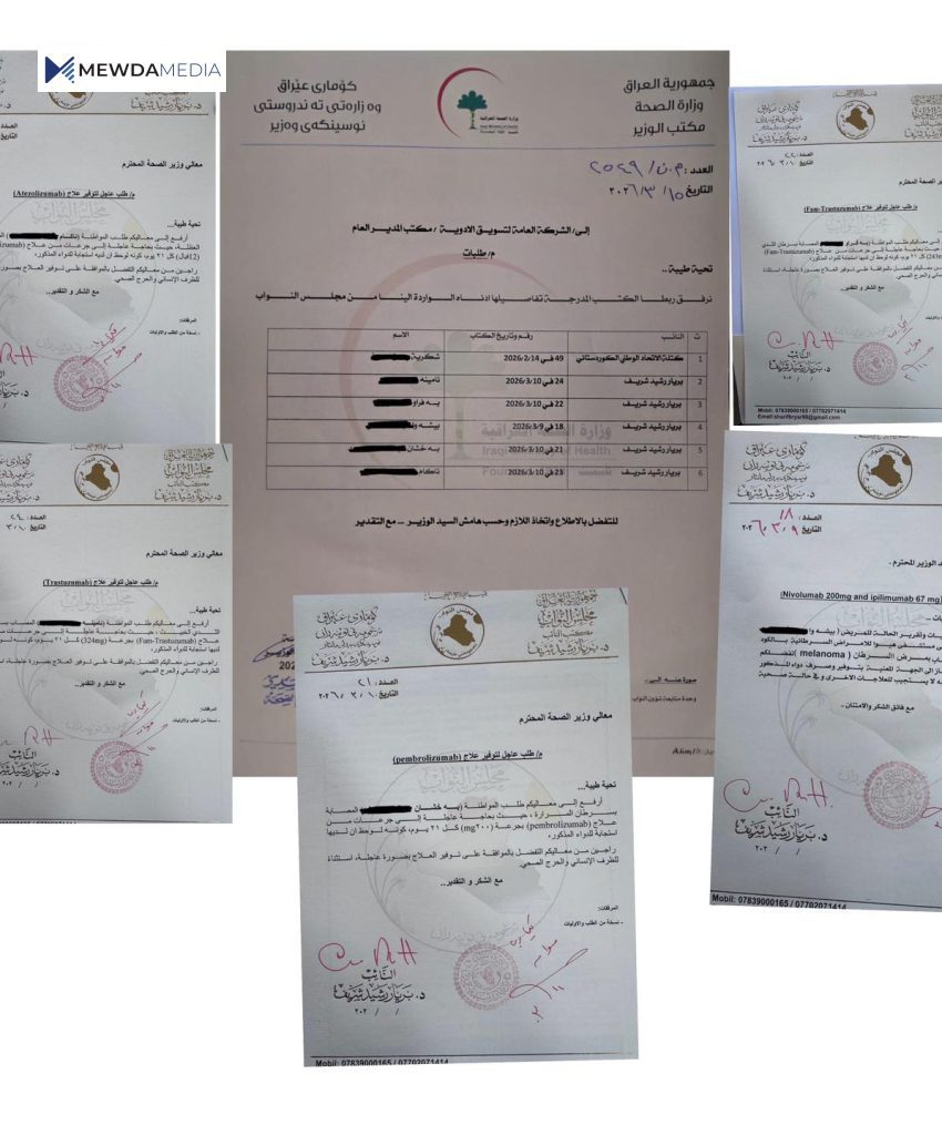 ئەندامی پەرلەمانی عیراق ئاشکرایکرد لە ماوەی رابردوودا بەشێکی زۆر لە هاوڵاتییانی تووشبوو بە نەخۆشی شێرپەنجە سەردانیان کردوون چونکە ناچار بوون بۆ وەرگرتنی دەرمانی پێویست رەزامەندی وەزیری تەندروستی عیراق بەدەستبهێنین دواتر دەرمانەکەیان بۆ دابین کراوە.
