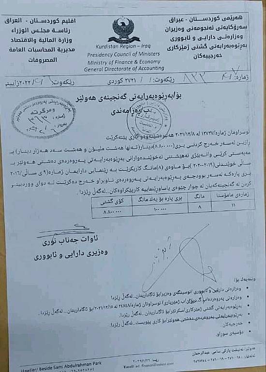 بەپێی نووسراوێکی وەزارەتی دارایی و ئابووریی حکومەتی هەرێمی کوردستان کە رۆژی 6ی شوباتی 2022 دەرچووە تیادا بڕیار دراوە بە خەرجکردنی پارەی هەشت مانگی مامۆستایانی وانەبێژی خولی نەهێشتنی نەخوێندەواری.