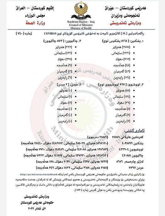 ئامارەکانی کۆرۆنا لە هەرێمی کوردستان