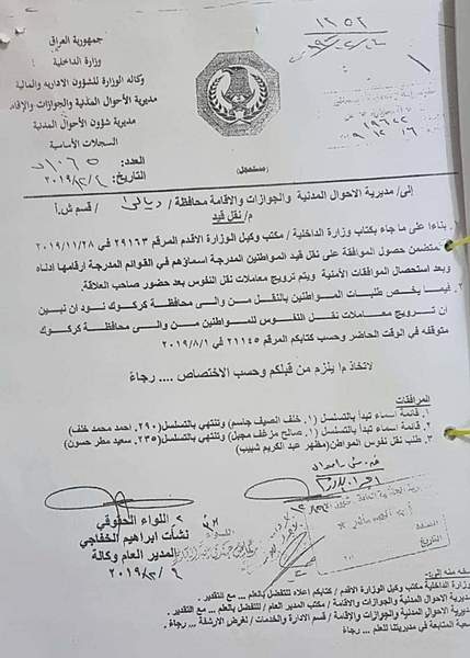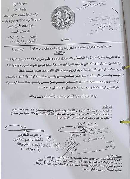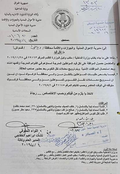 سالار مەحمود، ئەندامی پێشووی پەرلەمانی کوردستان رایگەیاندووە "بە لیست و بە جەڵەب خێزان و تاکەکەسی تەعریب، نفوس و دەنگدانیان لە بەغدا و شارەکانی باشوورەوە دەگوازرێتەوە بۆ کەرکوک و خانەقین، ئەم پرۆسەیە جاران بە شاراوەیی و تاکە تاکە، خەڵکی دەگوازرانەوە بۆ ناوچە کوردستانیەکان ئێستا بەپێی ئەو دیکۆمێنتانەی بڵاوی دەکەمەوە دەردەکەوێت بە ئاشکرا بەلیست و بەنووسراوی فەرمی پرۆسەکە ئەنجام دەدرێت".