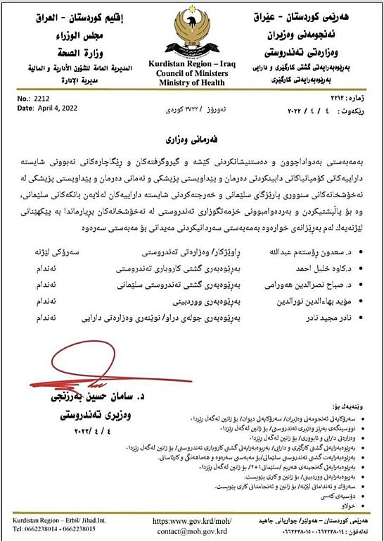 بەگوێرەی نووسراوێكی وەزارەتی تەندروستیی هەرێمی كوردستان كە واژووی دكتۆر سامان بەرزنجی، وەزیری تەندروستی لەسەرە و تێیدا هاتووە "مەبەستی بەدواداچوون بۆ كێشەی كەمی دەرمان و خەرجنەكردنی شایستە داراییەكانی كۆمپانیاكانی تایبەت بە بواری دەرمان لەلایەن بانكەكانی سنووری پارێزگای سلێمانییەوە بڕیاری پێكهێنانی لیژنەك بۆ بەدواداچوونی ئەو كێشانە دراوە".