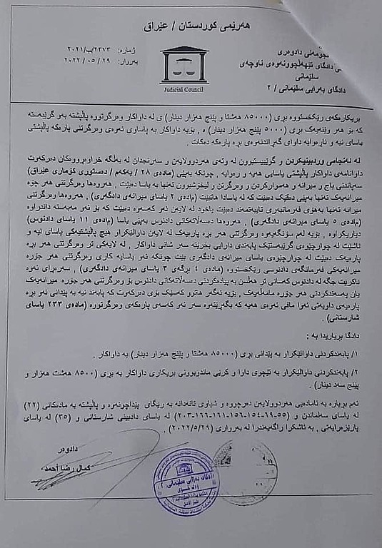 دادگەی سلێمانی لە بەرژەوەندیی هاوڵاتییان بڕیارێک دەدات لەبارەی وەرگرتنی پارە لە فەرمانگەکانی دادنووس، بەپێی بڕیارەکەی دادگە بێت وەرگرتنی ئەو پارەیە لە هاوڵاتییان لە رووی یاساییەوە پووچەڵە.