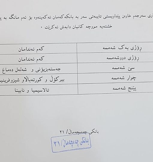 ئەمڕۆ دووشەممە 13ی حوزەیرانی 2022 بانکی چەمچەماڵ رایگەیاند "بانکی چەمچەماڵ ئاگاداری خاوەن پێداویستییە تایبەتەکان دەکات بەپێی ئەم خشتەیەی لای خوارەوە سەردانیان بکەن بەمەبەستی وەرگرتنی مووچەکانیان".