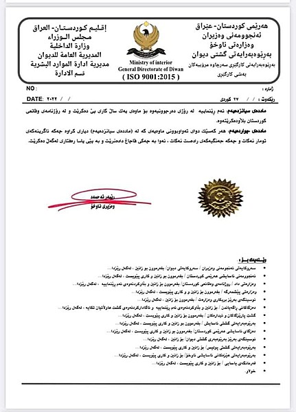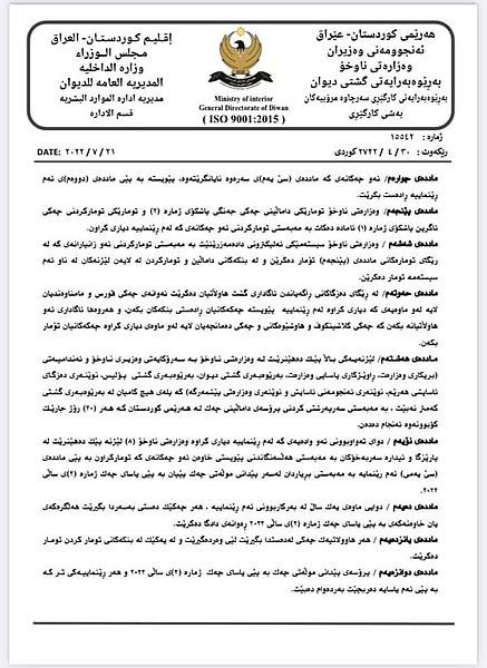 وهزارهتى ناوخۆى حكومهتى ههرێمى كوردستان، رێنماییهكانى پێدانى مۆڵهتى چهك بڵاودهكاتهوه و رایدهگهیهنێت، دهسهڵاتى پێدانى مۆڵهتى چهك لهلایهن وهزیرى ناوخۆ، پارێزگارهكان و سهرپهرشتیارى ئیداره سهربهخۆكانهوه دهبێت.
