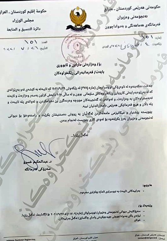 فەرمانگەی هەماهەنگی و بەدواداچوون لە ئەنجومەنی وەزیرانی هەرێمی کوردستان داوا لە وەزارەتی دارایی دەكات دۆسیەی چاككراوی فەرمانبەرانی رێكخراوەكان بۆ ئەنجومەنی وەزیران بنێرن بۆ جێبەجێكردن.
