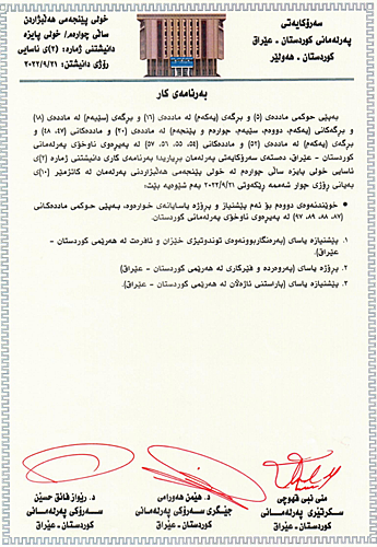 بەگوێرەی بانگهێشتنامەیەکی سەرۆکی پەرلەمانی کوردستان، رۆژی چوارشەممە پەرلەمانی کوردستان کۆدەبێتەوە و خوێندنەوەی دووەم بۆ چەند پێشنیاز و پرۆژە یاسایەک دەکات.