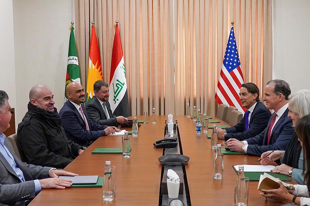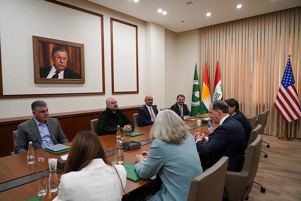 بافڵ جەلال تاڵەبانی، سەرۆكی یەكێتیی نیشتمانیی كوردستان لە بارەگای مەكتەبی سیاسی لە هەولێر پێشوازی لە برێت مەكگۆرك، نێردەی سەرۆكی ئەمریكا بۆ كاروباری رۆژهەڵاتی ناوەڕاست و باكووری ئەفریقا و وەفدێكی باڵای هاوڕێی كرد.