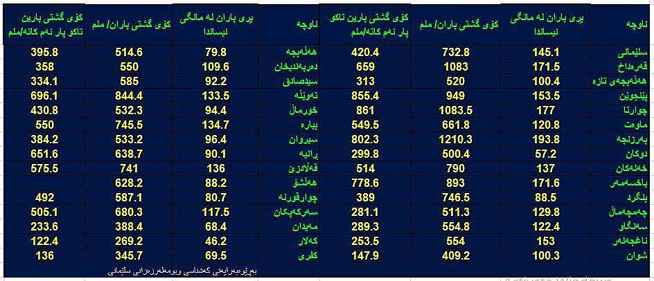 بەڕێوەبەرایەتیی کەشناسی و بوومەلەرزەزانی سلێمانی رێژەی بارانبارینی ناوچە جیاوازەکانی سلێمانی لە مانگی رابردوو بڵاوکردەوە.