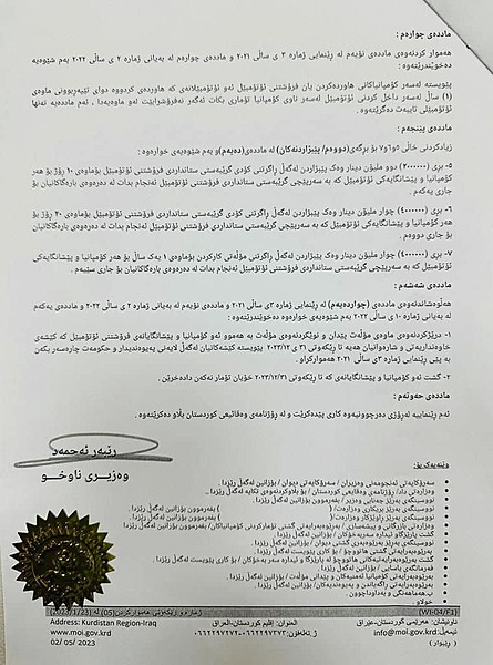 ئەمڕۆ پێنجشەممە 4ی ئایاری 2023، بە نووسراوێكی فەرمی كە وێنەیەكی دەست مەودا میدیا كەوتووە وەزارەتی ناوخۆی هەرێمی كوردستان هەمواری سێیەمی رێنمایی ژمارە 3ی ساڵی 2021ی تایبەت بە رێکخستنی کاری کۆمپانیاکانی هاوەردەکردن، گواستنەوە، فرۆشتنی ئۆتۆمبێل و پێشانگەکانی تایبەت بە فرۆشتنی ئۆتۆمبێل بڵاوكردەوە.