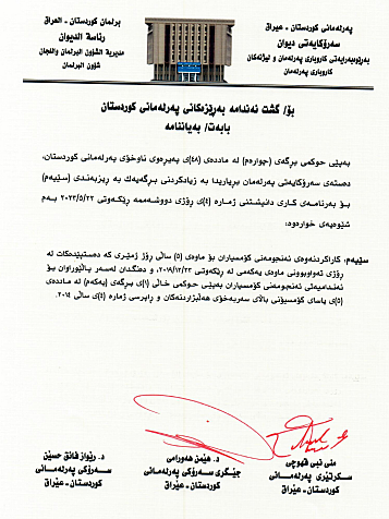 ئەمڕۆ 21ی ئایاری 2023 دەستەی سەرۆکایەتیی پەرلەمان رایگەیاند "سبەی دووشەممە دانیشتنی پەرلەمان لە کاتژمێر 10ی بەیانیی دەستپێدەکات و لە بەشی یەکەمی کۆبوونەوەکەدا دەنگدان لەسەر داواکاریی دەستلەکارکێشانەوەی پەرلەمانتارانی فراکسیۆنی کۆمەڵ دەدرێت".