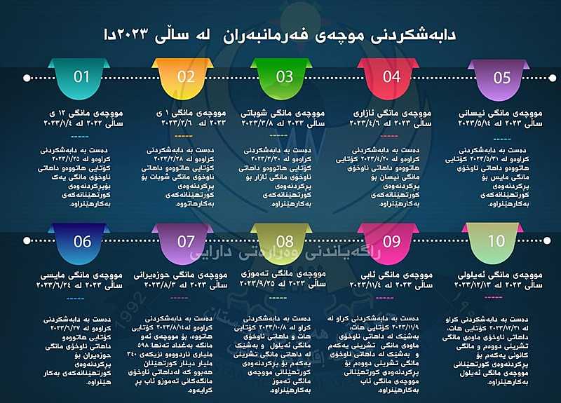 هاوپێچ خشتەی دابەشکردنی مووچەی ١٠ مانگ لە ساڵی ٢٠٢٣ و خشتەی مانگانەی خەرجی بەکاربردن