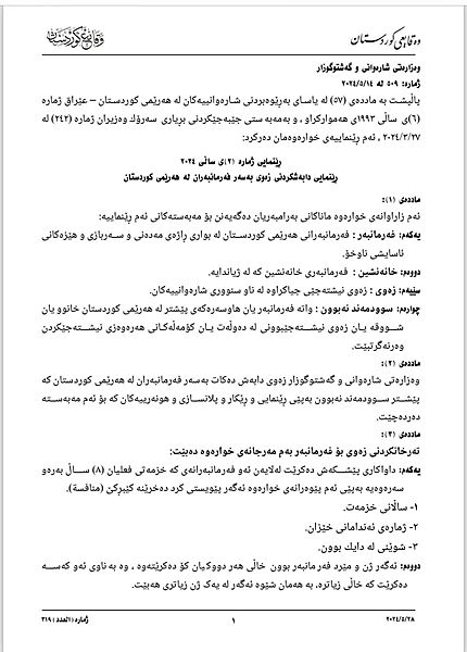 وەزارەتی شارەوانی و گەشتوگوزارى حكومهتى ههرێمى كوردستان رێنوێنییەكانی پێدانی زەوی بەفەرمانبەران لە رۆژنامەی وەقایعی كوردستاندا بڵاو كردەوە.