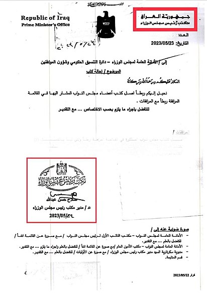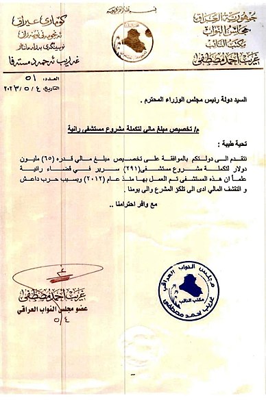 رای گشتی و هاوڵاتیانی دەڤەری راپەڕین ئاگادار دەكەینەوە كە پرسی تەواوكاری نەخۆشخانەی (291) قەرەوێڵەیی رانیە لە ساڵی پار (2023)و بەڕێز (م.غەریب ئەحمەد) لە فراكسیۆنی یەكێتی وەك نوێنەر و هەڵقوڵاوی نێو خەڵكی دەڤەری راپەڕین و قەزای دوكان بەم بەڵگە نوسراوانەی خوارەوە ئەنجامیداوە بە واژۆی بەڕێز (محمد شیاع سودانی) سەرۆك وەزیرانی عیراق.