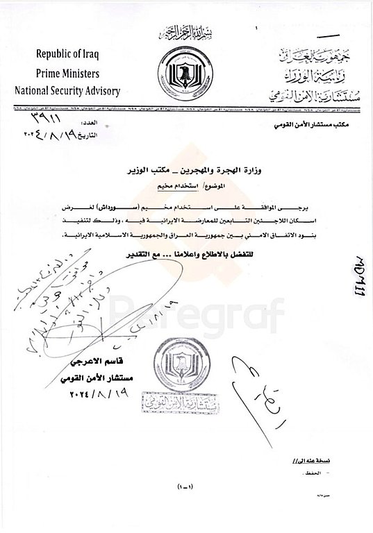 قاسم ئەعرەجی، راوێژکاری ئاسایشی نیشتمانی عیراق له نوسراوێكدا رەزامەندی وەزارەتی کۆچبەری عیراقی وەرگرتووە بۆ جێگیرکردنی حزبه کوردییەکانی رۆژههڵاتى ئێران لە کەمپی سورداش له سلێمانی، کە لە ئێستادا لە دەڤەری زەرگوێز جێگیرکراون.