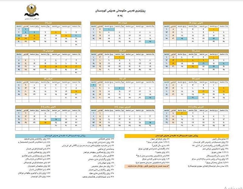 بهپێى رۆژژمێرى فهرمى حكومهتى ههرێمى كوردستان بۆ ساڵى 2024، رۆژى پێنجشهممهى ئهم ههفتهیه پشووى فهرمییه.